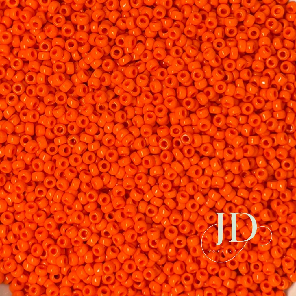 Neprůhledné oranžové korálky s hladkým a lesklým povrchem.