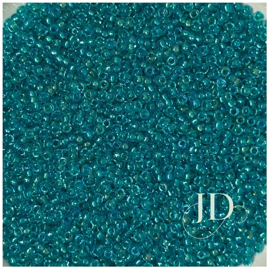 Průhledné korálky s tealově zeleným průtahem ve fancy úpravě, která dodává sytý a zářivý vzhled.