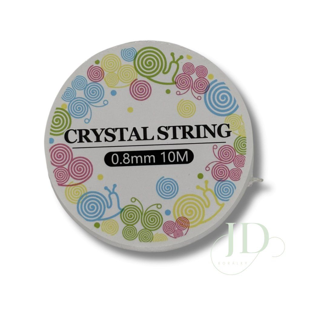 Bezbarvé elastické vlákno Crystal String o průměru 0,6 mm. Průhledné, pevné a pružné – ideální pro náramky a další šperky bez zapínání.