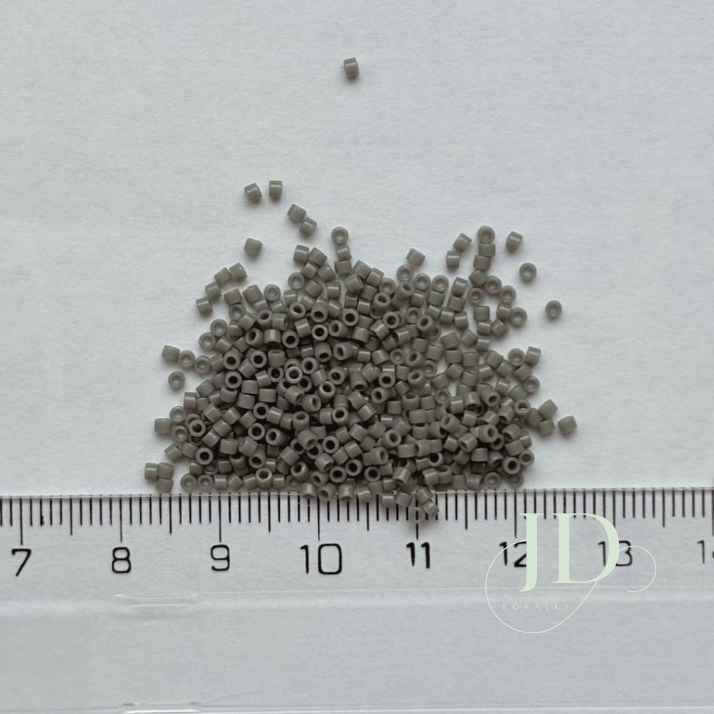 Korálky Miyuki Delica 11/0 v klasickém šedém odstínu, univerzální barva pro kombinace s výraznými i neutrálními tóny.