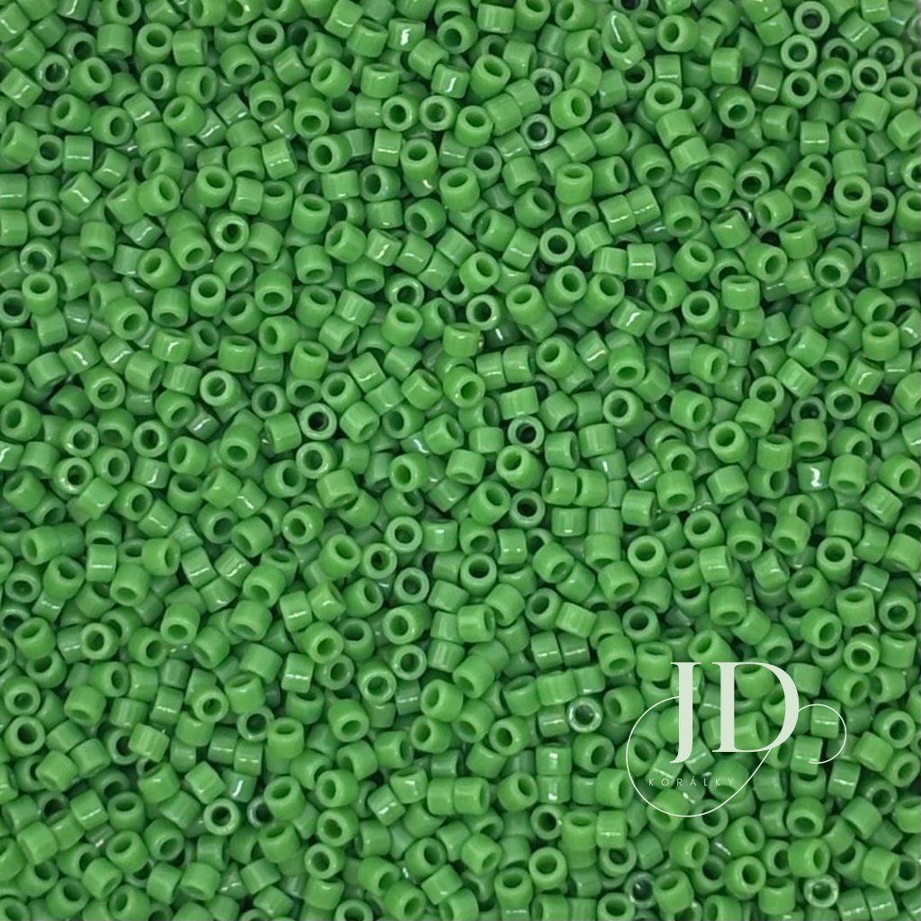 Korálky Miyuki Delica 11/0 v hráškově zeleném odstínu, ideální pro svěží barevné kombinace a přírodní motivy.